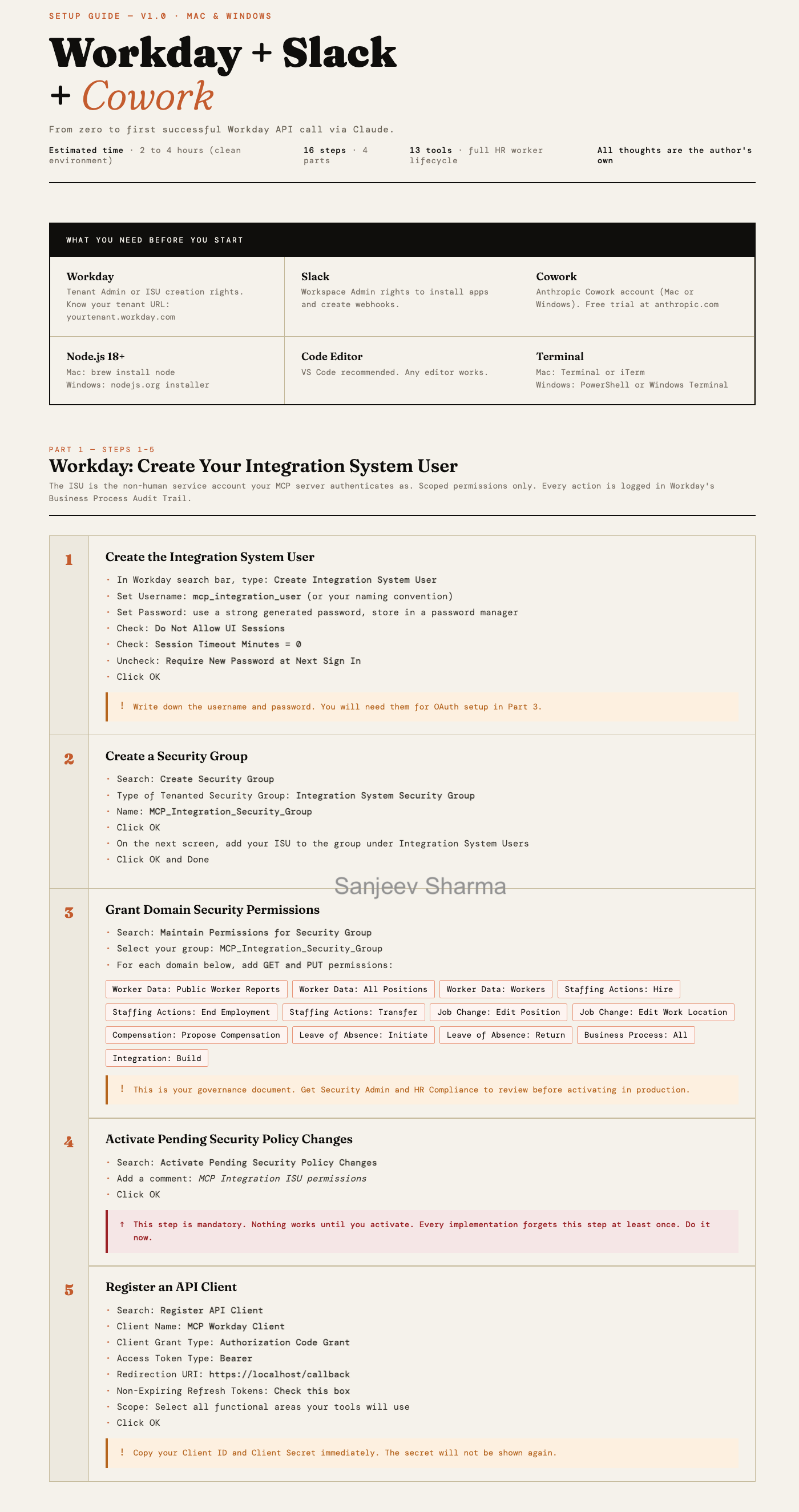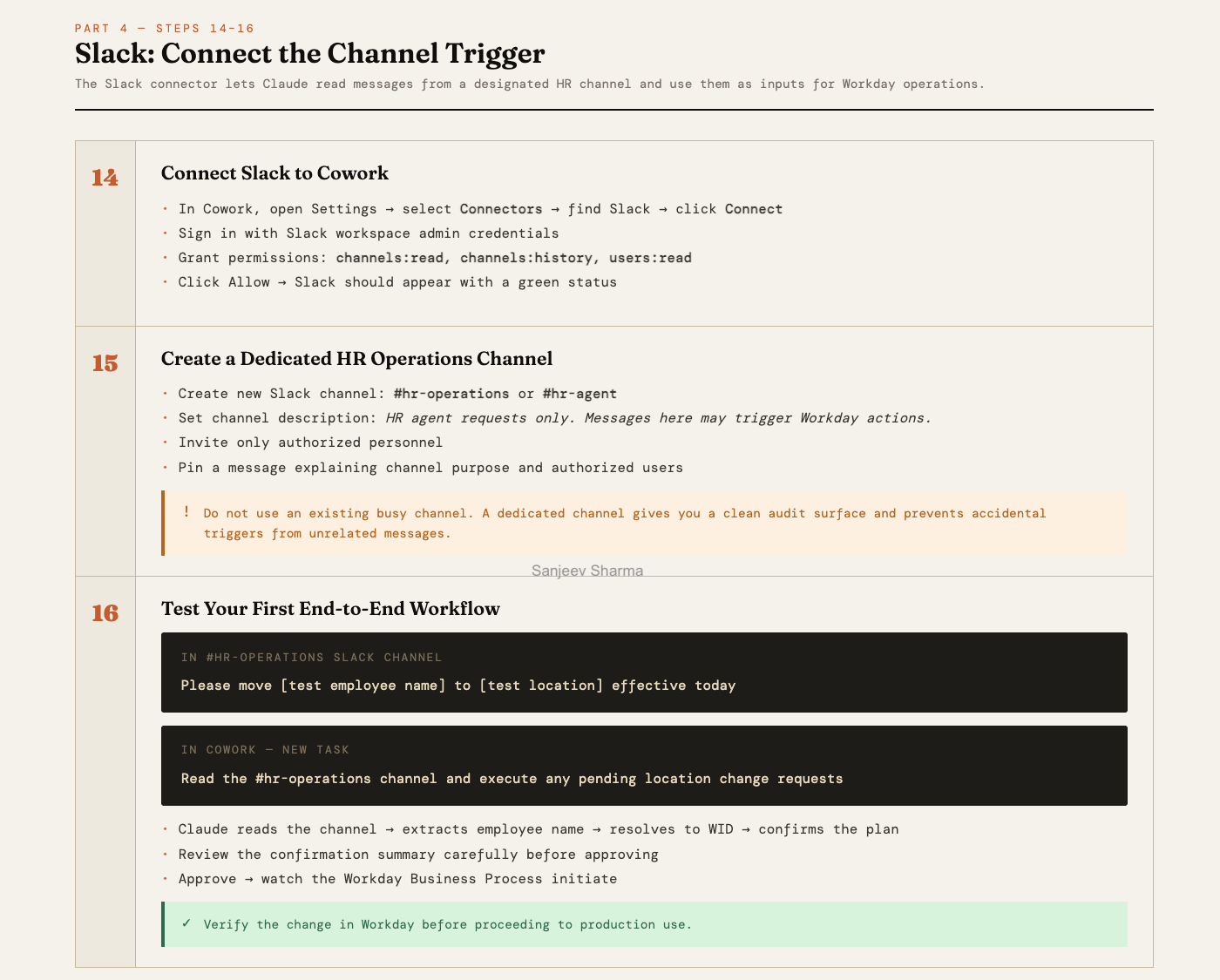 Steps for an implementation: Workday, Slack, and Claude (or any agentic layer).