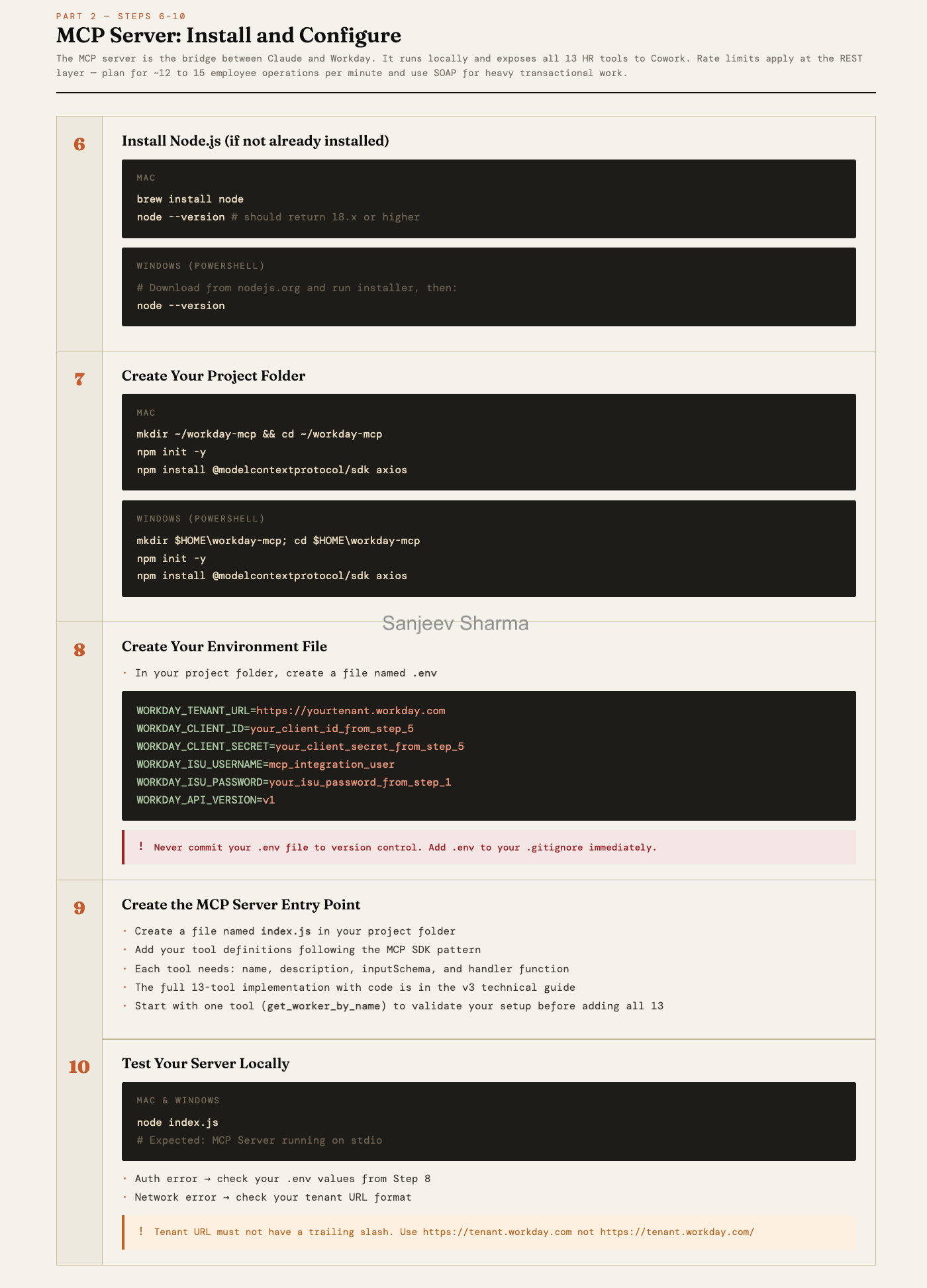 This is the engineering heart of the build. The MCP server sits between Claude and Workday and it is where the real design decisions live. Cowork gives Claude something to talk to. The MCP server is what Claude is actually talking to.
