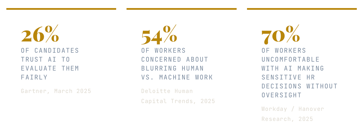 And then there is the academic record. A 2024 paper published in Management Science, titled “Aversion to Hiring Algorithms: Transparency, Gender Profiling, and Self-Confidence,” confirmed experimentally what practitioners observe daily: HR professionals actively resist algorithmic hiring recommendations, and that resistance intensifies when the algorithm’s reasoning is opaque. The study also identified a failure amplification effect: errors made by algorithms are judged more harshly than identical errors made by humans. One bad algorithmic decision does more damage to trust than ten bad human decisions.